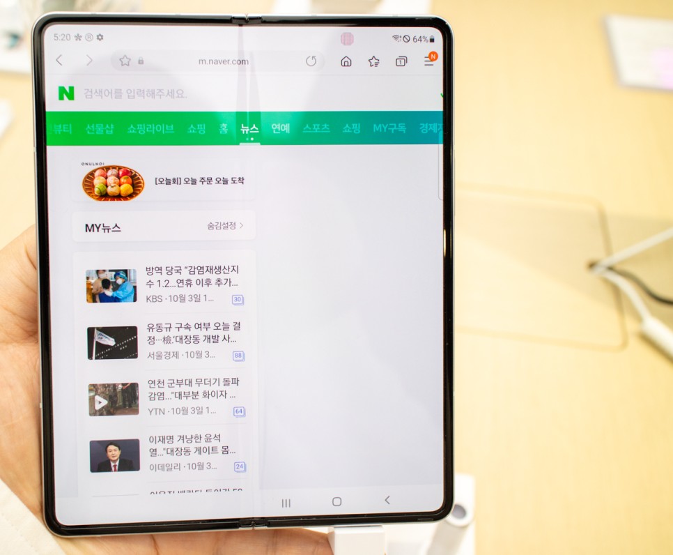 그냥 삼성 갤럭시 폴드 3가 안에서 주름이 더 깊고 선명해요. 그럼 이게 어떻게 가능했지?