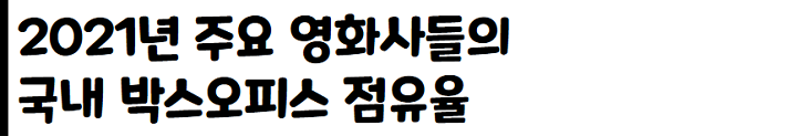 ※ 본 포스팅은 2021년 개봉작을 기준으로 작성되었으며, 각 영화는 제작 및 투자 기준으로 분류되어 있습니다.※ 본 포스팅에 사용된 데이터는 한국영화진흥위원회 통합전산망을 참고한 것으로 12월 27일까지 집계된 것입니다.