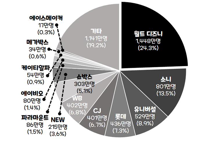 지난해의 경우 코로나 19 때문에 할리우드 영화사들이 잇따라 개봉을 연기하면서 한국 영화사들이 국내 박스오피스 점유율 상위권을 휩쓸었어요. 하지만 할리우드 영화사들이 본격적으로 영화를 개봉하기 시작한 올해는 예년과 마찬가지로 월트디즈니가 국내 박스오피스 점유율 1위를 차지했습니다. 다만 2위부터는 국내 영화사들이 차지했던 코로나 19대 히트 이전과는 달리 올해의 경우 1위부터 3위까지 모두 할리우드 영화사들이 이름을 올렸죠. 아무래도 올 한 해 국내 영화사들이 할리우드 영화사에 비해 소극적으로 사업을 운영한 게 점유율 순위에 큰 영향을 미친 것 같아요.