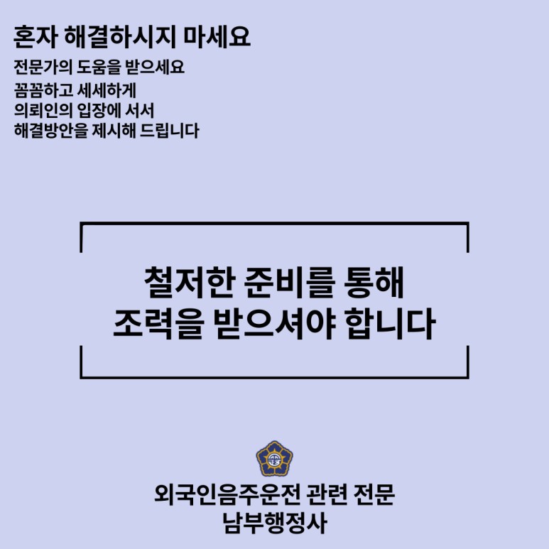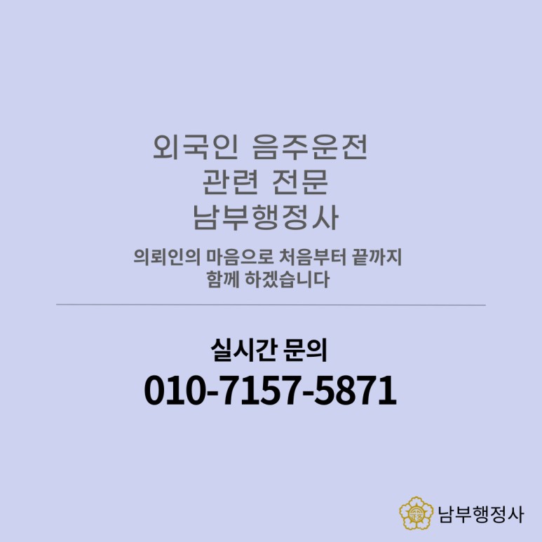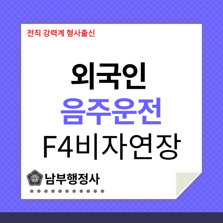 안녕하세요 외국인 F4 비자 음주운전 관련 전문 남부행정사입니다