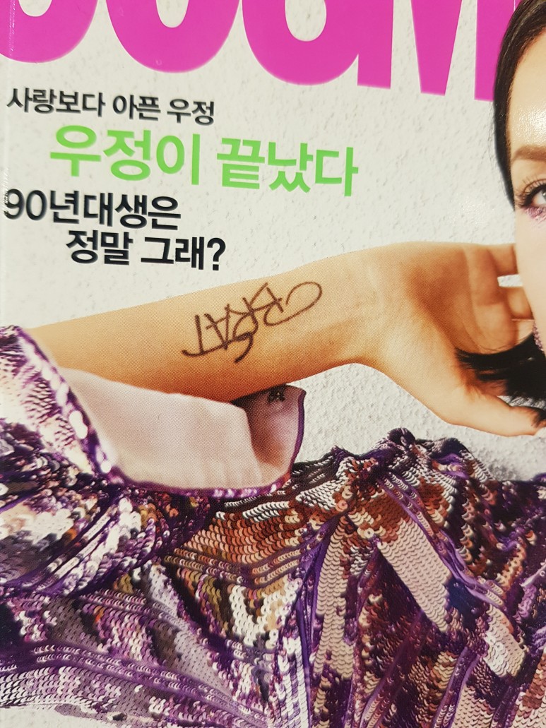 그런데 요즘 한국 가수 연예인 할 것 없이 많은 스타들이 패션 타투를 접하는 것 같아요. 너무 과하지 않게 포인트로 하는 게 유행인가 봐요