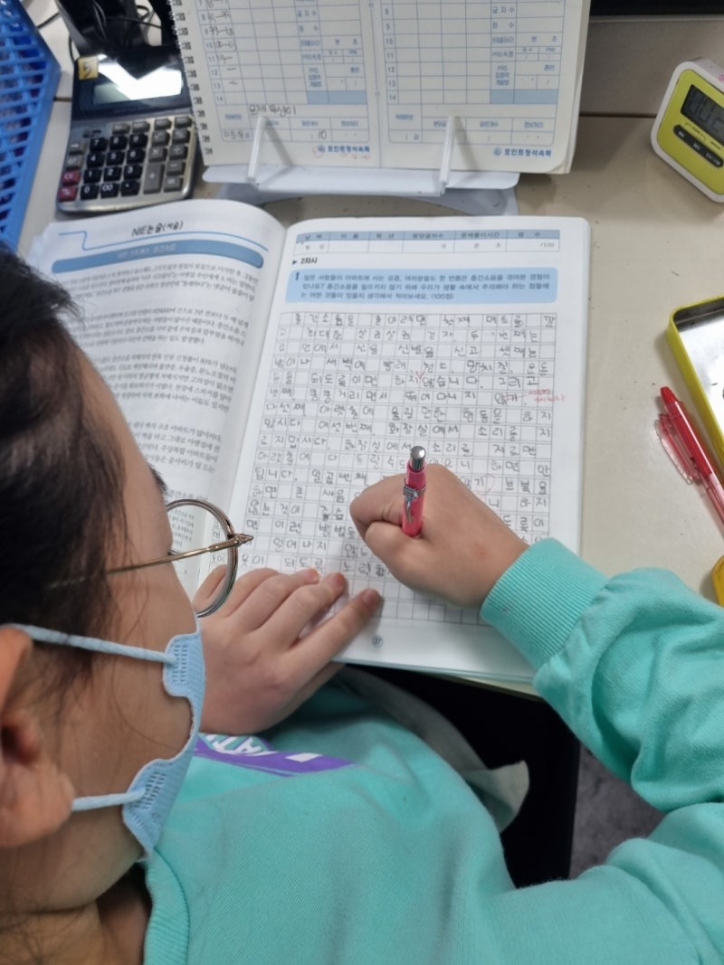 학생들의 글짓기가 끝나고 원장님께서 바로 틀린 부분과 수정할 부분을 메모해 주시고, 글짓기의 어려운 부분인 맞춤법과 띄어쓰기도 자동으로 공부되지 않을까 개인적으로 생각해 봅니다. 사실 요즘은 조금 글자를 소리나는 되로 쓰거나 은어 사용 빈도가 높아서 우리도 가끔 정확한 맞춤법을 모르지만 가야동 논술학원 글쓰기 수업에서는 전혀 용납할 수 없는 것 같습니다.