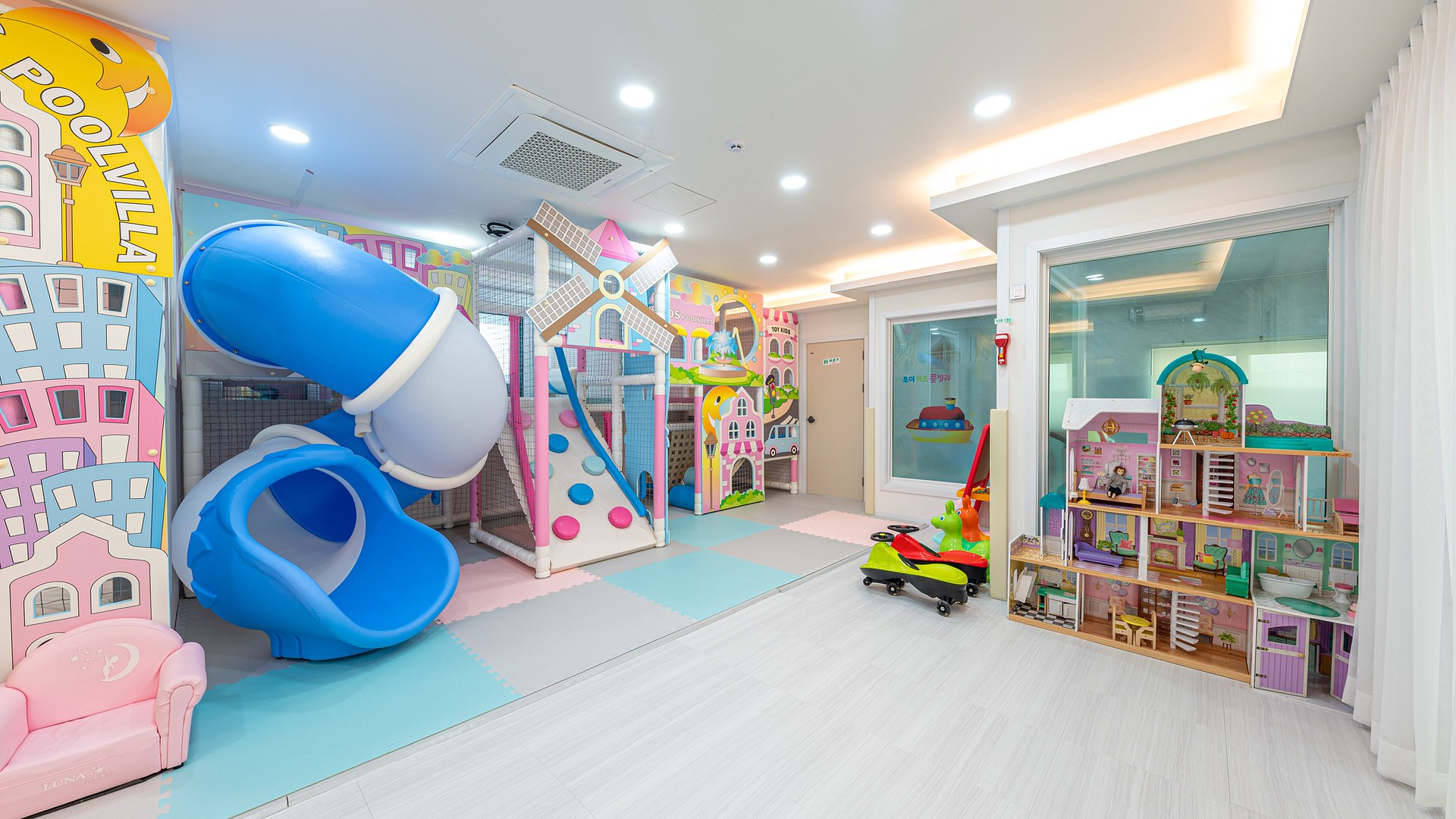 이번에 묵은 방은 65평짜리 산호방으로 분홍색 느낌으로 동화 속을 여행하는 느낌이다. 트램펄린, 해마 미끄럼틀 등 모든 놀이가 바닷속을 탐험하듯 놀 수 있다.