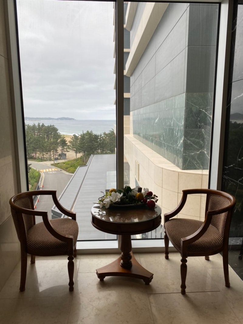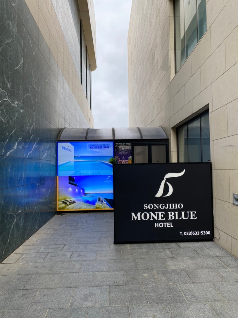 르네 블루바이워커힐 바로 옆에 위치하고 있습니다.결론부터 말하자면 무조건 송지호 모네블 호텔 추천입니다! 가격도 훨씬 좋고(하지만 마찬가지로 오션뷰) 프라이빗하게 즐길 수 있는 인피니티 풀은 정말 최고(참고로 워커힐에는 수영장이 전혀 없습니다), 게다가 와인 족욕과 루프탑까지 매우 만족스러웠던 리얼 리뷰, 지금부터 시작합니다.