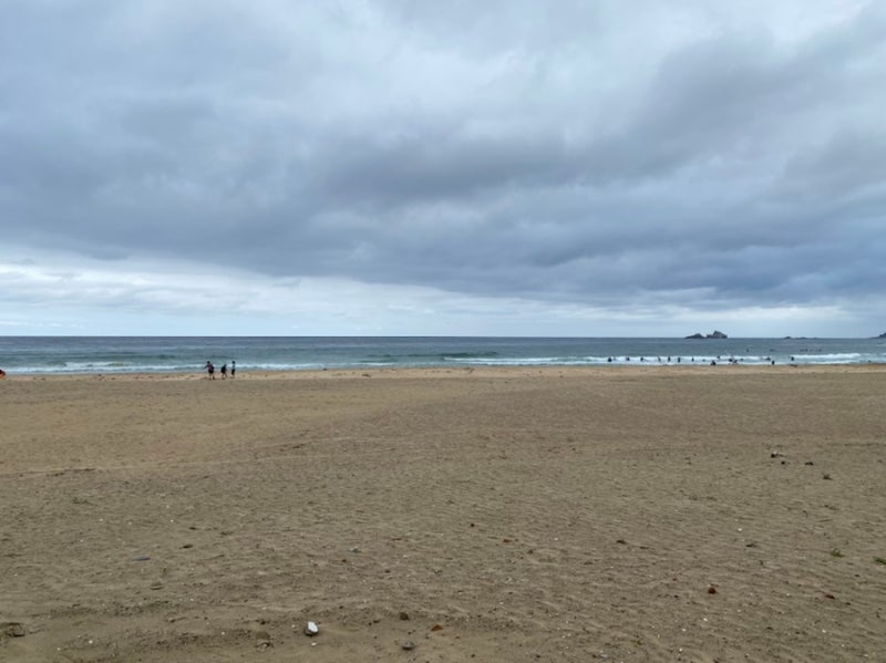 진짜 눈앞이 송지호 해수욕장이었거든요. 오랜만에 바다를 보니 기분이 좋아졌어요! 하필이면 날씨가 조금 흐리고 조금 추웠는데 그래도 덥지 않아서 다행이에요? 포지티브긍정ww