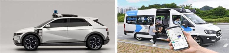 ▲ (왼쪽) 현대아이오닉(출처 현대자동차) / (오른쪽) 자율주행 셔틀버스(출처 현대자동차)(사진제공=특허청) ©특허뉴스 국내 기업에서는 현대차가 전통적인 완성차 업체로, LG는 정보통신기술 등 IT 기업의 강점을 내세우며 특허권 확보에 적극 나서고 있다.