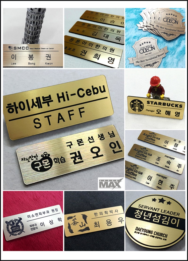 이름표인데 성함 외에 원하시는 문구도 가능하고 단체, 개인 등 다양한 주문이 가능합니다. 뒷면의 염좌 외에 2구, 3구 자석으로도 변경 가능합니다.