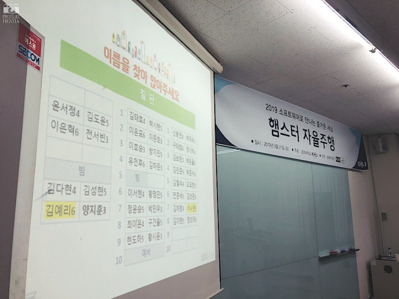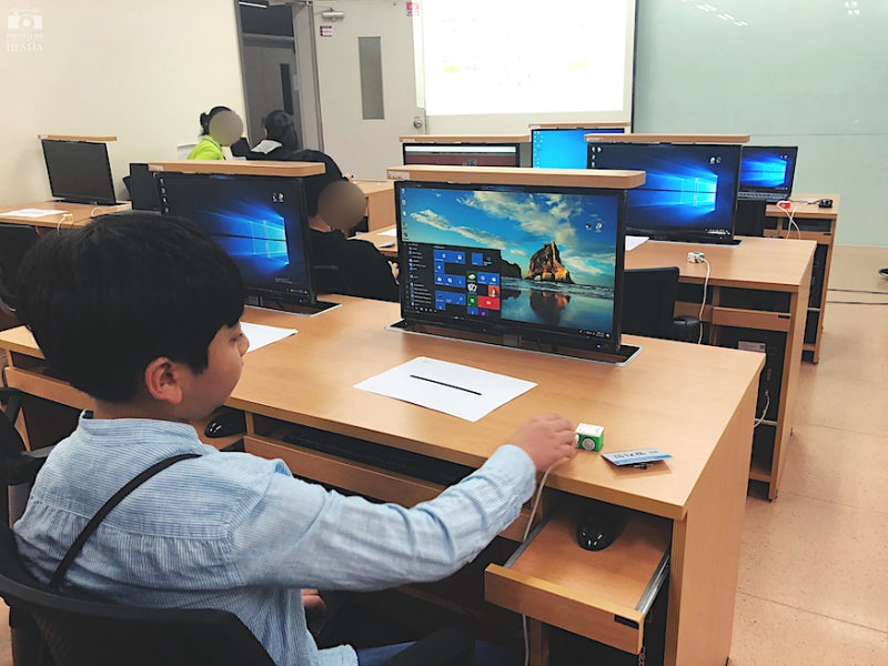 아이 교육시간이 끝날 무렵 강의실 앞에서 기다리는 학생들의 수강표를 보면… 4시간 교육이 끝나고 아이가 나오는데 표정이 어둡다.사실 소프트웨어 관련 학습이 없던 아이였기 때문에 낯선 이론의 4시간 수업이 조금 어려웠던 것 같다.결국 다른 아이들이 하는 걸 지켜봐야 했다고… 아무래도 엔트리 프로그래밍의 기초가 마련된 아이들에게 더 즐거운 체험이 되지 않을까 싶다.다음 수업은 기초를 다지고 도전하자.경희대 학생들이 주관하는 무료 SW교육이 있으니 아이들과 함께 공부할 수 있도록 둘러보자.