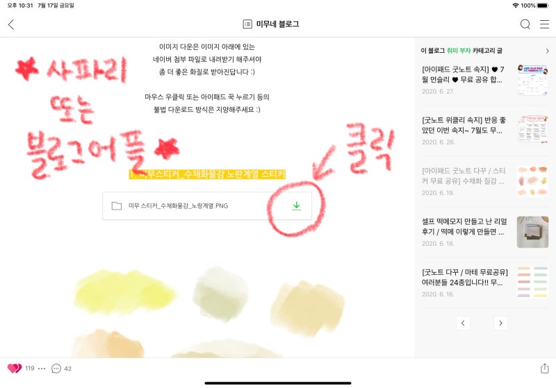 안녕하세요 밈입니다.저번에 속지를 굿노트에 저장하는 방법을 알려드렸는데 비슷할 것 같아서 따로 스티커나 PNG이미지 방법을 안내해 드리지 않는데…!! 요즘 계속 문의 주시는 경우가 있어!안내를 할까해요!! 아이패드 굿노트에 제가 공유한 무료 이미지 PNG 파일 떡메모지, 스티커, 마스킹테이프 이미지를 어떻게 저장하고, 어떻게 굿노트에 오픈하는지 자세한 방법을 알려드릴게요~! 아이패드에 PNG스티커, 이미지 저장하는 방법, 그리고 굿노트로 스티커 여는 방법