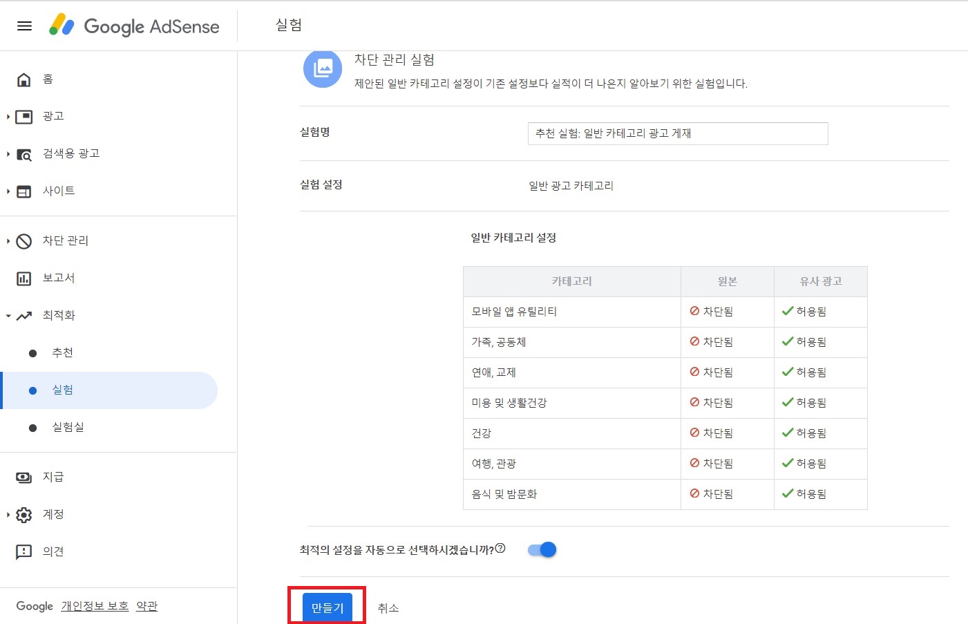 구글 애드센스 수익 증대를 위해 해본 일 1. 구글 애드센스 광고 차단 관리 및 최적화 실험에 도움이 된다고 해서 남들이 하는 것처럼 수익이 적은 광고 위주로 차단해 봤는데 오히려 수익이 줄어든 기억이 있습니다. 그래서 원래 옷을 입었고 지금은 만지지 않았습니다. 확인해보니 오히려 수익이 줄어든 분들도 있더라구요.