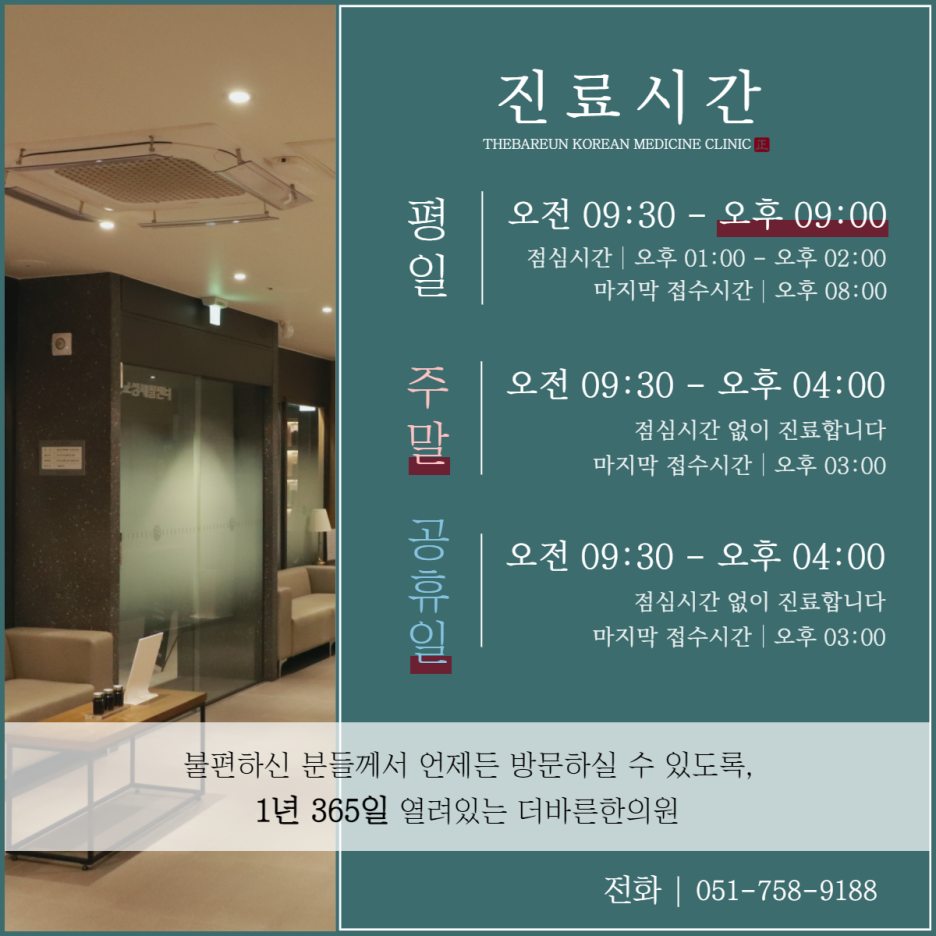 지금까지 해운대의 더 바른 한방병원과 함께 편도염을 배웠습니다.일교차가 아직 큰 요즘 건강에 유의하시기 바랍니다.부산광역시 해운대구 해운대로 794 삼정에리움 3층~4층