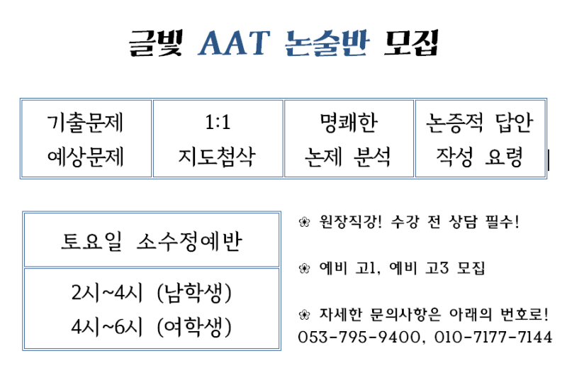 안녕하세요. 굴빛에서 경북대학교 AAT 대비 특강반 모집을 안내드립니다.