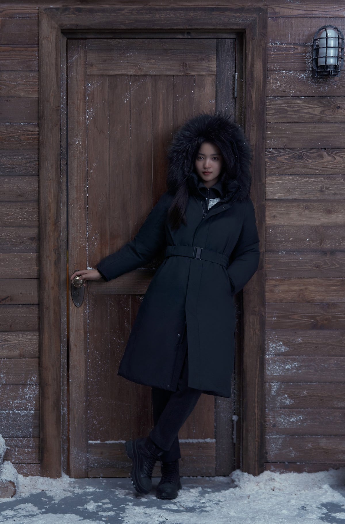 후드 앞뒤 조임 기능이 있어 방한을 위해 모자를 타이트하게 착용할 수도 있고 벨트 디테일이 있어 허리를 강조해 날씬해 보일 수도 있어요!