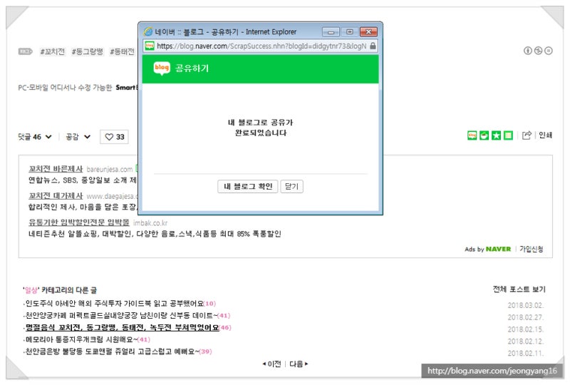 민트챙이님 블로그 스크랩 설정을 마치면 아래와 같이 공유됩니다.
