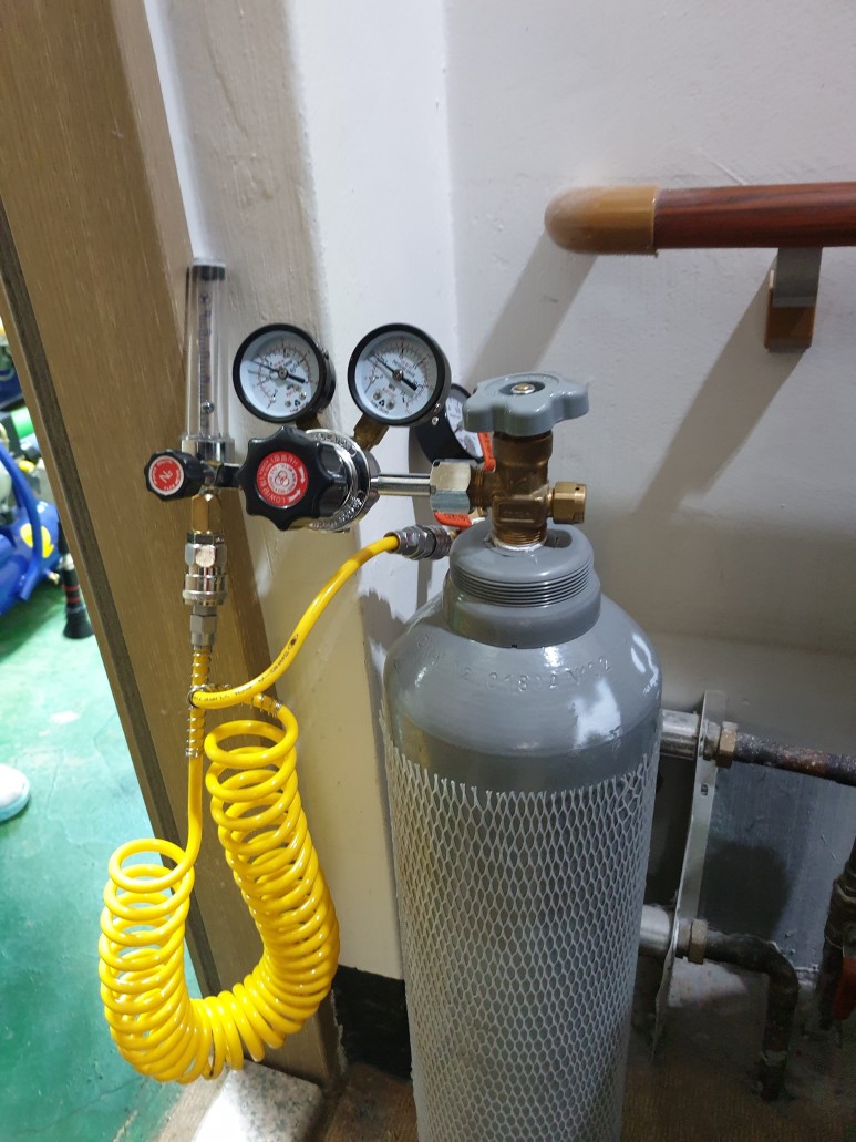위 사진은 혼합가스를 주입하는 장면입니다.혼합가스는 질소+수소를 혼합한 가스로 공기보다 비중이 적기 때문에 배관에 주입하면 균열이 발생한 부분에 가스가 올라 가스식 탐지기로 누수탐지가 가능한 장비입니다.가스식 탐지기는 광범위한 곳에 많이 사용됩니다. 당사는 압력 측정 게이지가 아날로그 뿐만 아니라 디지털 게이지도 보유하고 있어, 소수점 두 자리까지 누수량을 검사할 수 있습니다.아날로그 게이지는 육안으로 확인할 수 있는 압력이 한계가 있지만 디지털 게이지는 소수점 2자리까지 실시간으로 측정이 가능하며 초미세 누수까지 바로 확인할 수 있다는 장점이 있습니다.