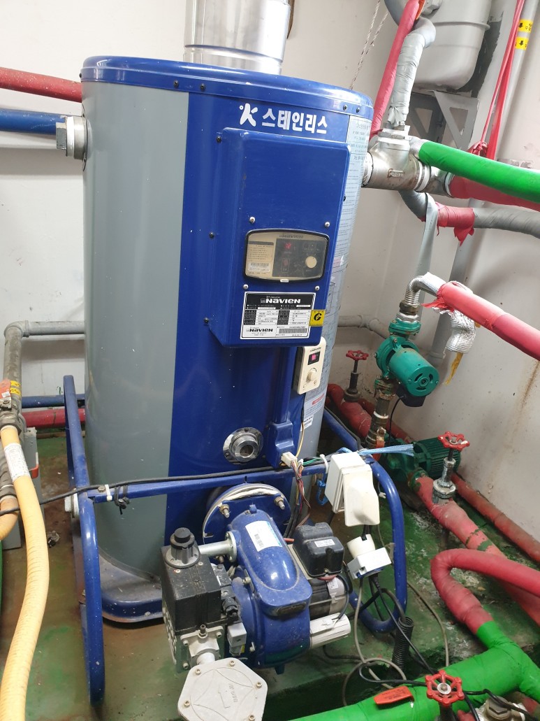 위에 사진은 병원 기계실 사진입니다병원이기 때문에 온수 탱크와 난방 탱크의 용량이 상당히 크다는 것을 알 수 있습니다.기계실은 건물의 모든 수도와 배관이 다니는 아주 중요한 시설임을 알 수 있습니다.