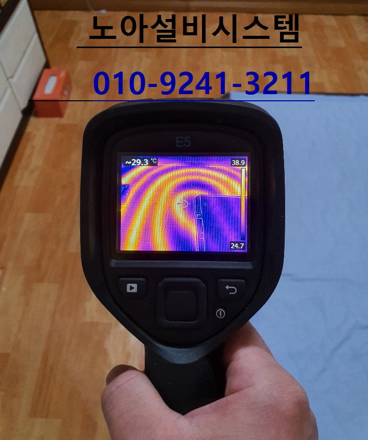 위 사진은 저희 회사의 첨단 장비인 열화상 카메라입니다열화상카메라는 상온 25도를 기준으로 열이 발생하는 (온수, 난방) 배관의 위치 및 누수지점을 파악하는 장비입니다. 열화 화상카메라의 장점은 굳이 바닥을 부수는 일 없이 배관의 위치를 신속하고 정확하게 파악할 수 있으며 이로 인해 불필요한 공사(인건비, 보수공사비용) 등을 상당히 낮출 수 있습니다.그리고 건축물의 결함 현상이 결로 현상인지 누수 현상인지까지 파악할 수 있는 첨단 장비입니다.
