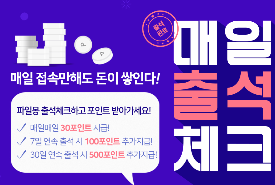 많은 자료들이 있어서 다 이용하려면 시간이 좀 걸릴 거예요 쉽게 볼 수 있는 방법을 알려드릴게요 우선 무료 회원 가입을 하면 최초로 5백 보너스 포인트를 줍니다. 그리고 출석체크를 하면 매일 30포인트씩 줍니다.연속출석하면7일재와한달동안더주고.그래서이건꼭해야되는일입니다.다음 지식 이벤트인데, 한번 답장을 붙일 때마다 5백포인트를 줘서 감동적입니다.최대 5천 포인트까지 받을 수 있기 때문입니다. 확인해주세요~