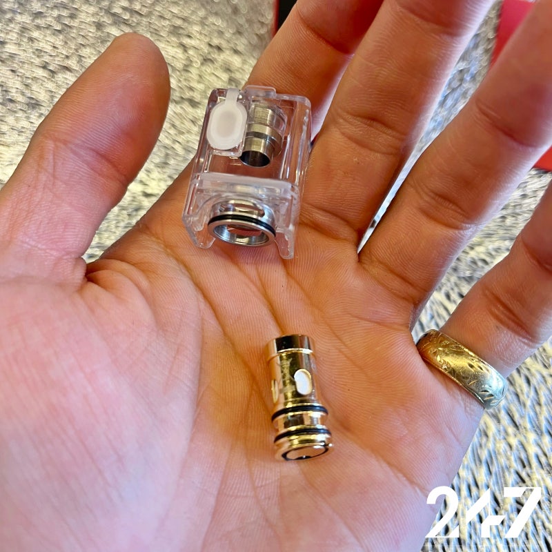 이번에 새로 출시된 닷모드 닷 AIOV2 탱크입니다.기존의 도트 AIO 탱크와 다른 점은 코일을 돌려 빼는 방식이 아니라 그냥 눌러 홈에 끼우는 방식으로 액상 주입구도 고무 실링되어 있어 누수 전 탱크보다 많지 않을 것 같습니다.도트 AIO를 사용했을 때 누수로 굉장히 괴로워했던 기억이 납니다. 와우 스트레스!! 부디 이번 도트모드 도트 AIOV2 탱크는 누수가 없기를 바랍니다!!팟과 액세서리는 기존 점 AIO와 모두 호환됩니다.