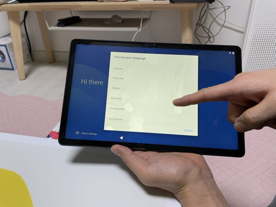 켜자마자 우리를 HI THE RE~ 기꺼이 언어를 선택하라고 나와