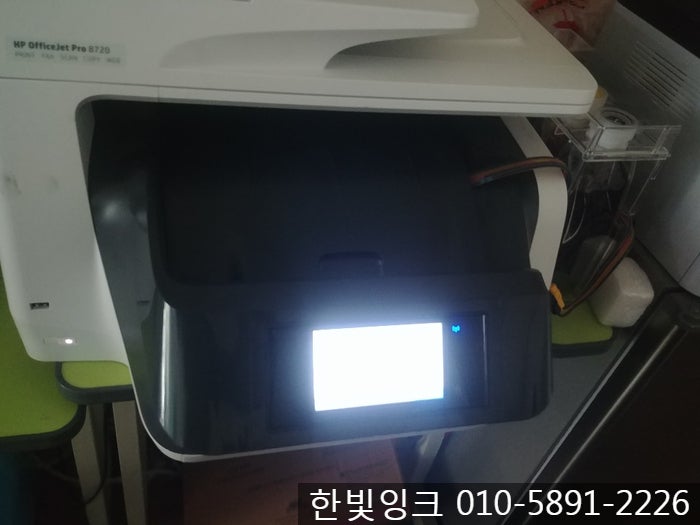 기종은 HP8720 제품이고 무한잉크로 개조해서 사용중 카트리지 칩누출 메세지가 떠서 불러주셨다고 합니다!