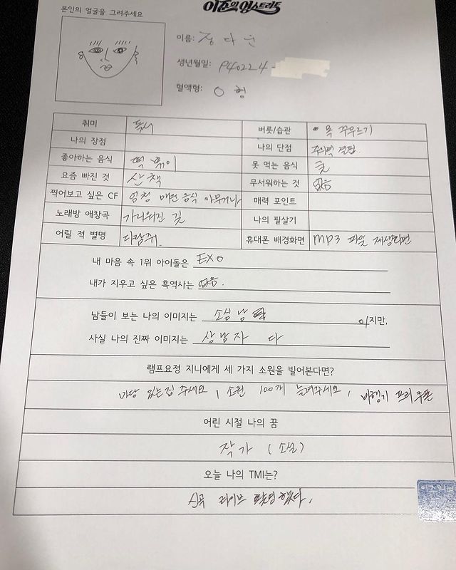 다운씨 본인 프로필