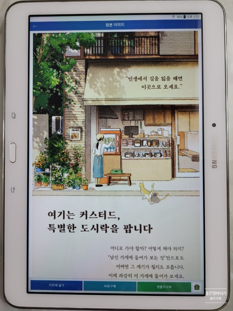 지난해부터 시작된 이른바”상가 st.”소설이 인기를 끌었다. 일부는 온 오프 라인을 구분하지 않고 여전히 많은 사랑을 받고 있다. 대체로”상가”을 중심으로 펼쳐지는 사람들의 대화를 통한 감동을 주는 구성이다. 다만 오늘 읽은 책<여기는 커스터마이즈, 특별한 도시락을 팔고 있습니다>는 상점들이 “적극적으로 “해결사로 나오지 않는다는 점이 조금 다르다고 본다.인터넷에 오르는 최근의 서평에서 “상가 st.”소설에 대한 독자의 시선이 조금 바뀐 것으로 나타났다. 소재와 내용은 다르지만 비슷한 구성, 비슷한 감성의 표지 일러스트에 일부 독자는 이제 피로감이 좀 있는 것 같다. 그러나 그럼에도 불구하고 여전히 인기가 높은 이유는 그 안에 사람 냄새 나는 때문이 아닌가 생각하고 보자. 소설이지만, 현실과 너무 동떨어진 분위기가 아니라 정말 우리 곁에 있을지도 모른다는 느낌을 주기 때문이다. 왠지 우리 주위에 있을 만한 이야기