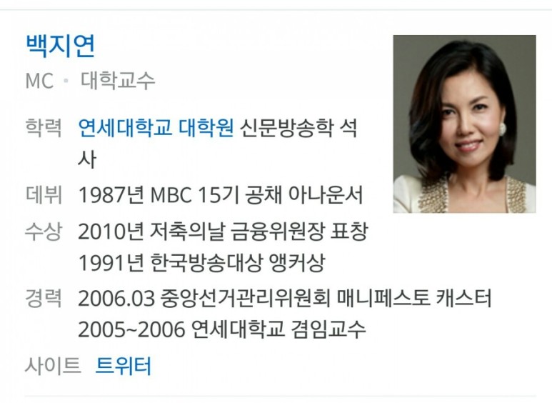 아직도 한국을 대표하는 앵커우먼이라면 백지연 씨를 들겠지만 누구도 이의를 달 사람은 없을 것이다.