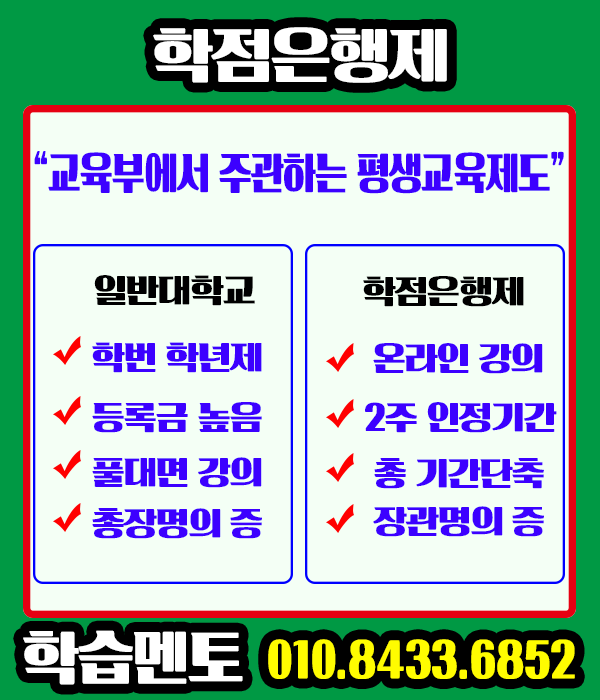 그것은 학점 은행제라고 하는 커리큘럼인데, 프로그램이라고 해도 과언이 아닙니다.왜 그러냐면요?