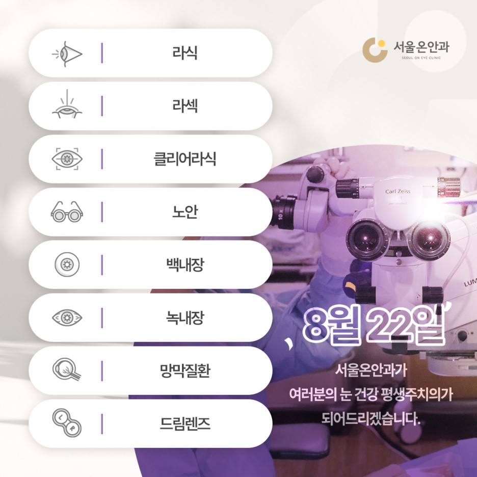 #백내장원인 #백내장증상 #백내장종류 #백내장초기증상 #서울온안과 어떤 생활습관이 백내장을 유발하는지 궁금하십니까?전자기기를 사용하는 시간이 많은 현대에서는 우리 눈도 전자기기를 사용하는 시간이 늘어난 만큼 상당한 피로가 쌓였고 시력 저하뿐만 아니라 다양한 안질환 위험도 커졌습니다.이 때문에 과거 노화로 인해 발생하던 안질환도 젊은 나이라고 안심할 수 없게 됐는데요.