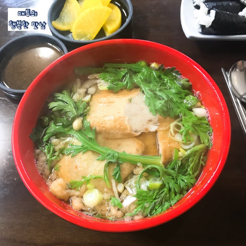 기본적으로 나오는 이거, 이거 깍두기도 진짜… 모말모말 바삭바삭한 느낌의 깍두기가 아니라 잘 익은 깍두기예요!간장소스는 우동에 나오는 어묵 찍어먹고 저는 개인적으로 김초밥도 여기 찍어먹어요.
