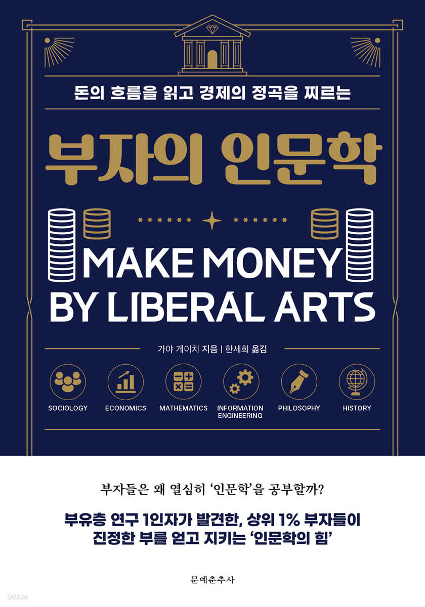제3장 수학우리는 흔히 수학이라는 말을 들으면 무조건 어렵다고 꺼리는 경향이 있는데, 이는 매우 안타까운 일이다.우리에게 필요한 것은 수학이 아니라 수학적 감각이기 때문이다. 따라서 이 감각을 잘 익히면 남들보다 훨씬 유리할 것이다. 제4장 정보학IT에 관한 감각은 수학적 감각과 마찬가지로 오늘날의 비즈니스에 불가결한 능력이지만 따라서 프로그래밍을 배울 필요는 없다.그것보다는 IT적인 감각을 익히는 것이 훨씬 중요하다제5장 철학부는 사람과의 의사소통의 산물인 만큼 사람을 잘 알아야 원만한 의사소통이 가능하다.철학이야말로 의사소통에 필요한 힌트를 주는 인문학인 마지막 장 역사학역사는 인간이 만드는 것이기 때문에 다양한 사람의 행동을 집대성한 것과 끝낼 수 있는 그런 의미에서 역사를 배우면 남들보다 빨리 지름길을 갈 수 있는 성공한 사람들 대부분이 역사에 관한 풍부한 지식을 가지고 있는 것도 이 때문이다*출판사에서 지원한 도서입니다.부자인문학 저자 구케이치출판 문예춘추사 출간 2022.12.15.부자인문학 저자 구케이치출판 문예춘추사 출간 2022.12.15.