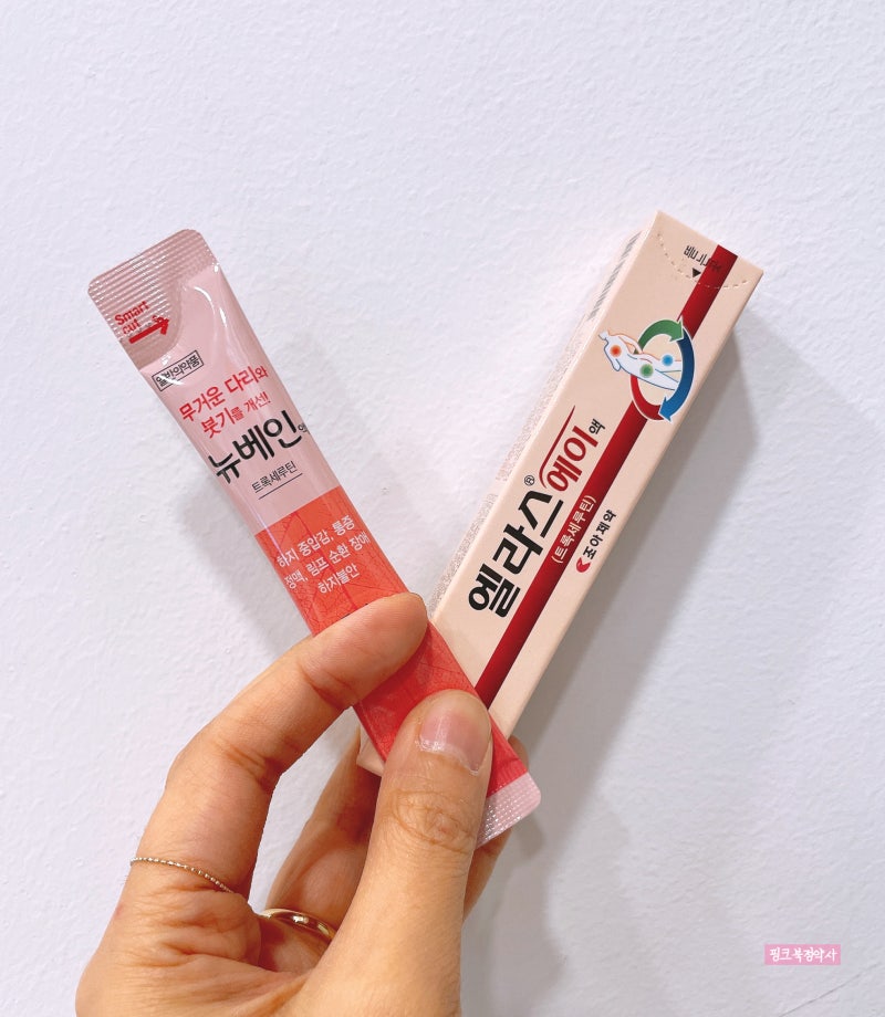 뉴베인액도 아까 알아봤던 엘라스에이와 같은 성분, 같은 함량으로 휴대용 분들이 쉽게 액상천으로 나온 제품이에요~ 망고맛이 나서 특유의 약맛을 좋아하지 않는 분들도 거부감이 없는 맛이에요!! 휴대하기 편한 제품을 찾으시거나 맛있게 드시고 싶으신 분들은 뉴베인에서 드셔보셔도 좋을 것 같아요.^^