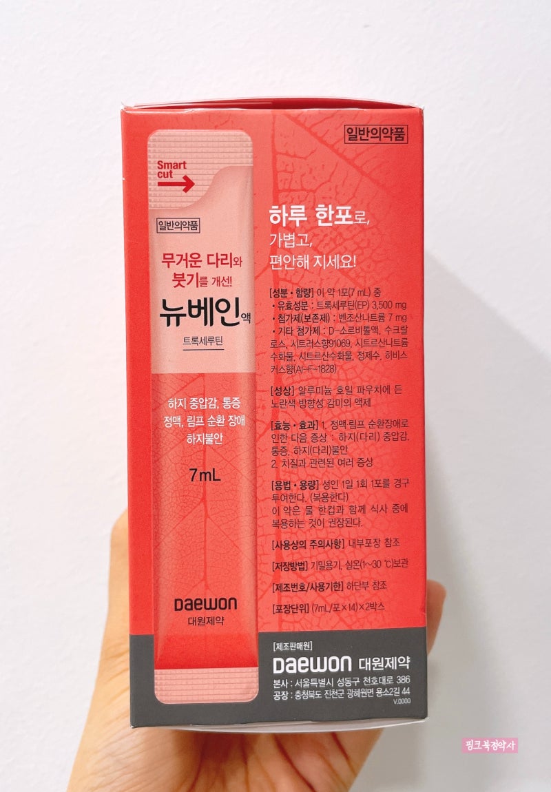 센시아정은 센텔라 정량 추출물을 주요 성분으로 사용하고 있습니다.~센텔라추출물은 쯔보쿠사라 불리는 식물 유래 성분으로 의약품으로는 크게 경구용품과 외용제로 나누어 사용됩니다~ 경구용품의 경우 정맥순환질환에 사용되는 센시아가 있으며, 외용제의 경우 마데카솔과 같은 연고로 상처의 콜라겐 형성과 혈관 형성을 증가시켜 상처 치유에 도움을 줍니다!센텔라 추출물이 정맥 순환을 개선시키는 데는 세 가지 이유를 들 수 있습니다.혈관벽 결합조직에 작용하여 정맥의 탄력을 향상시키고 모세혈관의 투과성을 정상화시켜 붓기를 제거합니다. 트룩셀틴과 마찬가지로 항산화 작용도 가지고 있습니다!하지정맥류와 같은 정맥순환질환은 대부분 플라보노이드계 약물이 사용됩니다. 대부분 비슷한 작용을 하고 있기 때문에 지속적으로 복용하기 좋은 제품을 선택하세요~ 지금까지 붓기를 빼는 약에 대해 알아봤습니다.궁금하신 점 있으시면 찾아주세요.^^오늘도 건강한 봄날 되세요~