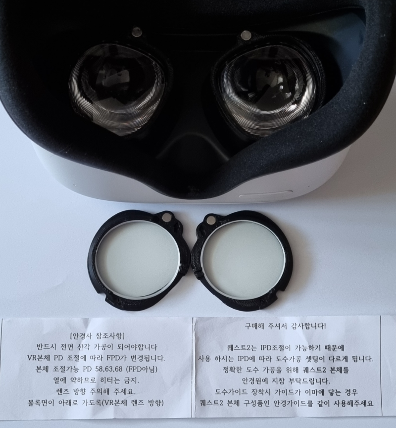 VR 도수 제작은 일반 안경과 제작 방식이 달라 가공시 주의하셔야 합니다.초점도 VR에 맞게 잘 가공해야 하고 렌즈 가공도 가이드에 맞게 가공해야 쾌적하게 사용할 수 있습니다.VR 도수가공은 많이 제작해본 안경사에 맞추시면 더욱 편안하게 제작해드립니다.그동안 가공해온 노하우가 축적되어 고객님께 전달할 수 있기 때문입니다.