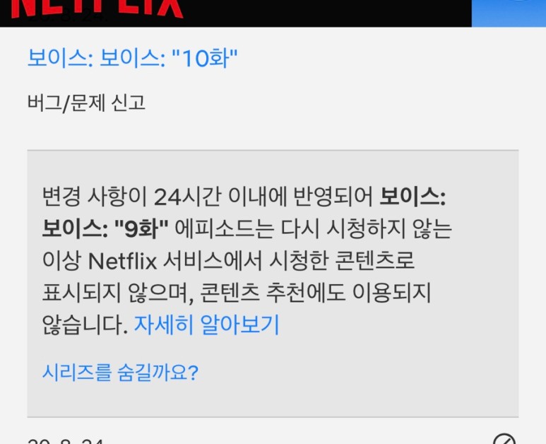 삭제 1분만에 종료! 넷플릭스를 시청 중인 콘텐츠