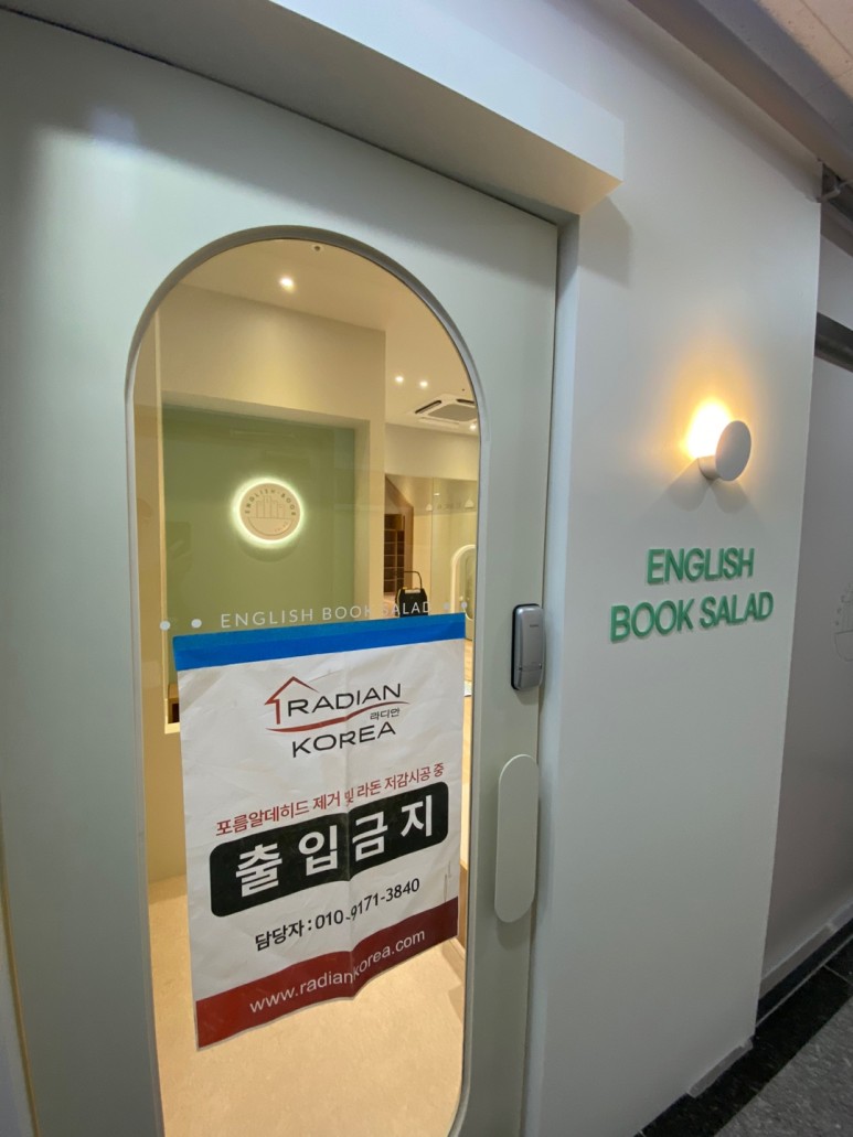 북셀 인테리어 공사가 끝난 후 어린이를 위한 안전한 공간으로 마무리 단계!