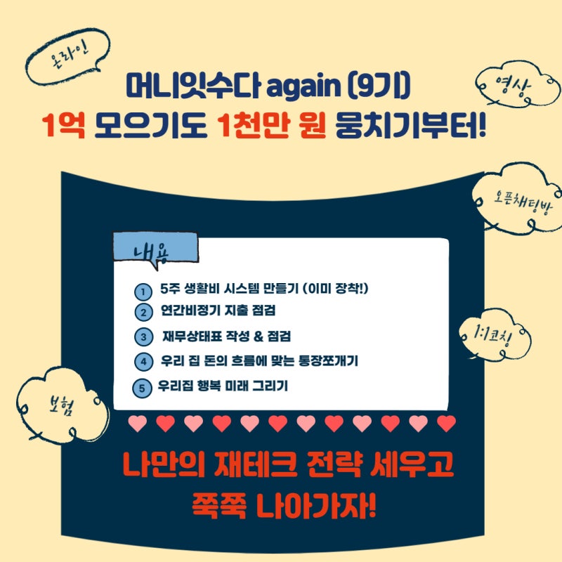 5주차 충분한 예산 내에서 결산하고 남은 돈은 ‘돈투자’ 계좌로 보낸다. #미니스톡 #미국주식 #동전모아 미국주식 #동전투자 일주일에 1만원씩~모으는 재미로 #절약한다. #집밥 #집밥 재테크현미쌀을 야채 계란 볶음밥으로! 저녁에는 어묵과 소시지 볶음, 토마토 계란전까지 만들어 보면 건강해지는 기분이다. 10월 가계부 월말 결산마지막 실업급여가 입금되었다. 그 돈은 2023년 세금을 위한 적립금으로 묶어놨다. 그냥 비상금 통장에 넣어두면 우당탕탕~ 급하게 돈이 필요할 때 써버리는 게 뻔하니까! 매달 20만원씩 3년 적금이 만기가 돼 700만원 해지한 뒤 마이너스 통장 일부 상환을 마쳤다. 총 1400만원의 마이너스 금액이 벌써 절반 남았다!2022년 12월 31일까지 마이너스 통장 0원이 된다!’고 선언했으니 실현될 것이다!그렇게 되겠지! #가계부 #월말결산 #피드백지출이 큰 항목:공과금>문화 생활비(가족 여행)>경조사(남편의 생일)>교육비와 양육비>꿈 지출>보험>미용비 지출이 적은 항목:교제비와 후원<의료비<그 외의 지출>교통비 만족도가 높은 항목은?문화 생활비(가족 여행)과 경조사비의 만족도가 높다. 일년에 한번 가족 여행 때문에 6개월 간 돈을 모아서 그 돈을 충실히 썼다. 예산 가운데 잘 다녀왔으니 그걸로 만족도 업 업!!그리고 경조사비로는 남편의 생일 선물로 현금을 건넸다. 겨울옷을 꼭 사길 바라는 마음을 담아^^ 안타까운 것이 남는 항목은?꿈 지출 예산이 10만원이었으나 예산이 2.5배 초과했다. 나머지 11월과 12월 2개월간”인풋을 위한 강의”는 잠시 멈추고”아웃풋”를 할 시기에 살자 이미용비는 애들이 크다”옷값”특히 겨울옷을 살 때는 단위가 기본 10만원 단위다! 내년인 이용 예산을 “현실적”로 설정해야 한다. 그리고 매월 정해진 이용비에서 사용하지 않고 남은 돈은 “적금”에서 모아 두려는 전략을 세워야 한다! 2023년의 옷값! 너 제대로 잡겠다! 다음 날 예산 계획은?꼭 절약에 집중하고 싶은 항목은? 주거비/공과금 중에 “가스 요금”을 의식하라! 11월에는 가급적 씻을 때만 보일러 가동, 평소 수면 양말을 신고 옷을 껴입은 자기 선물도 “돈”이 걸리지 않고 있다”공원 산책””방학”그리고 대학”갤러리 관람”로 대체하라! #10월#풍동 재테크한 달 동안 가정식을 하며 #식비를 절약한 결과 77,020원을 소액투자로! 작지만 조금씩 모으고 있다.^^. ‘돈이 목돈이 된다’는 믿음으로!돈 아껴! 목돈도 낸 돈부터! 지금~ 충분히 잘하고 있어! 11월도 같이 여럿이서 즐겁고 간단하게 해보자! #세이브머니챌린지 #머니이터 #가정경제재무장관 #돈목돈만들기 #365일자동절약시스템가계부 #자동절약시스템혼자서는 어려울때 용기를 내세요! #세이브머니챌린지23기 #2022년가계부모집:) 세이브머니 챌린지 23기와 함께 2022년 가계부 연간 결산합니까? (~11/3마무리) 푸른 물감을 바른 듯 맑은 가을입니다. 10월 한달은 어떻게 보내셨나요? 갑자기 추워지는 바람에 아이들이… blog.naver.com11월 3일 모집 마감입니다. 감사합니다。사랑합니다。
