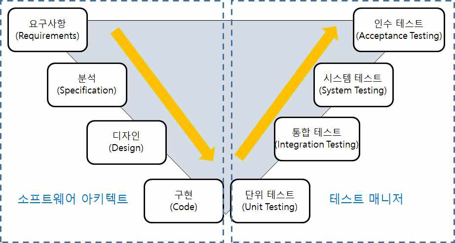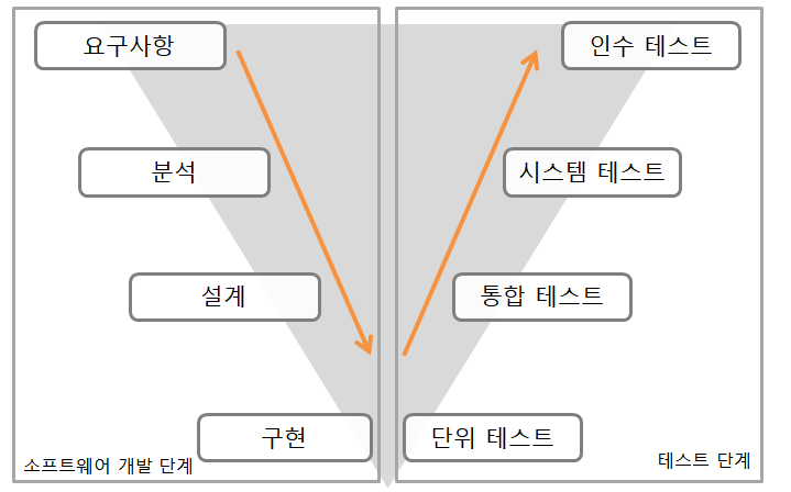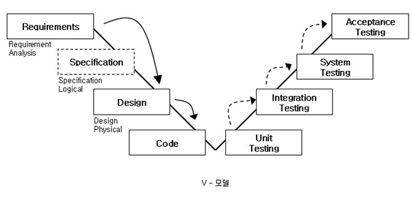 V-Model 테스트는 소프트웨어 개발 단계와 밀접하게 관련되어 있습니다. 각 개발단계에 따라 테스트를 어떻게 적용할 수 있는지 소프트웨어 개발단계와 테스트와의 관계를 표현한 모델을 V-Model이라고 합니다. V-Model은 요구사항 분석(Requirement), 아키텍처 설계(Specification), 상세설계(Design), 구현(Code) 및 테스트 순서로 구성된 개발 라이프사이클 모델(SDLC, Software Development Life Cycle) 중 폭포수 모델(Waterfall Model)을 기반으로 테스트 단계를 정의한 모델입니다. V-Model에 정의된 테스트 단계는 4단계입니다.