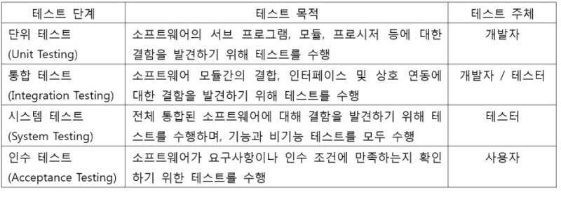소프트웨어 개발 단계에 따른 소프트웨어 테스트의 분류 및 방법