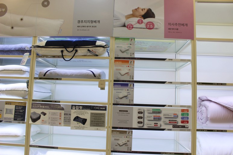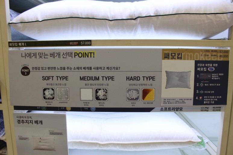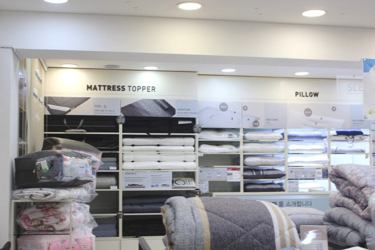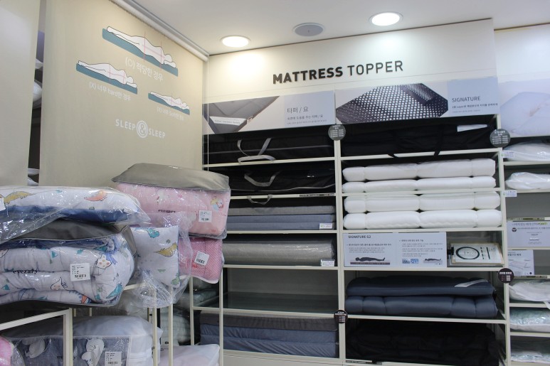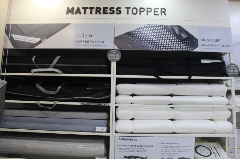 바로 옆 한쪽에 매트리스 토퍼, 베개 코너가 있었어요