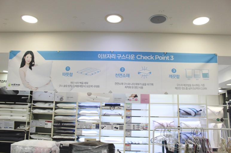 구스이블에 들어가 있으면 손도 가벼워 보이지만 따뜻한 구스 샘플이 눈송이처럼 한쪽에 매달려 있었습니다