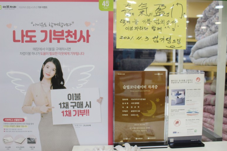 한쪽에 있는 슬립코디네이터 자격증이 보여서 사진으로 찍어봤어요수면전문교육을 이수한 슬립코디네이터가 상주하고 있으며, 소재와 형태가 다른 145종의 베개, 이불, 내용물, 토퍼 등을 체험할 수 있는 공간이 마련되어 있습니다.