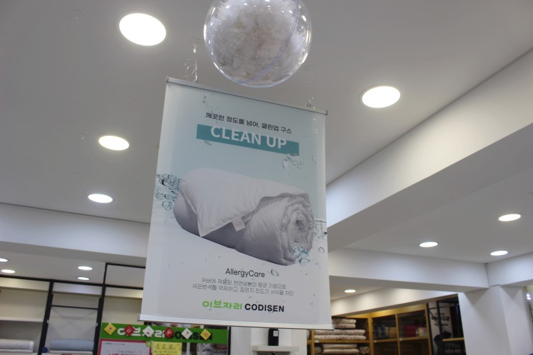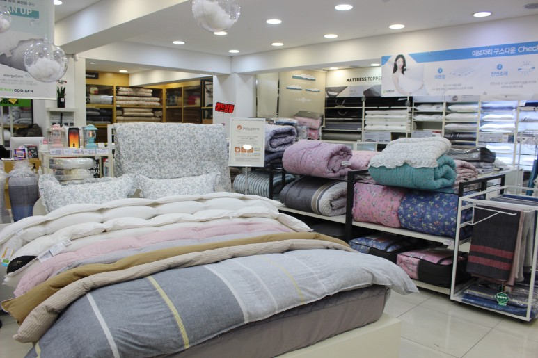 세일중인 상품도 있으며, 앞치마, 베개커버, 요커버, 침구커버, 이불, 토퍼 등 다양한 침구류가 있었습니다.