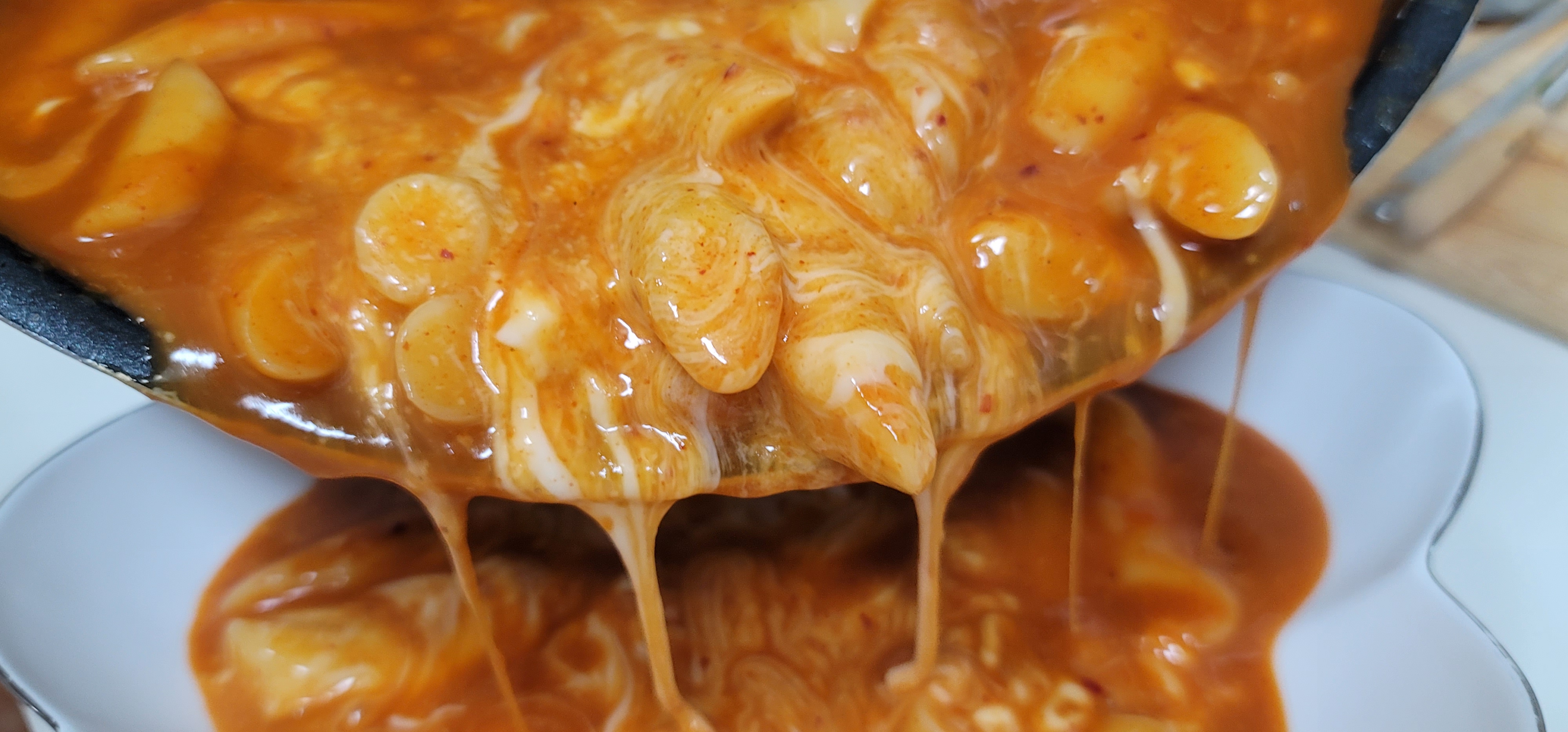물론 기본 양념 비율을 잘 맞춰도 100% 신정 떡볶이 맛을 재현할 수는 없지만 이건 떡볶이 황금 레시피로 인정하는 맛이에요~ 국랑 같이 먹어도 되고 치즈랑 같이 비벼 먹어도 너무 맛있어요.신전떡볶이st로 만든 떡볶이 레시피 이웃분들도 같이 만들어보세요.