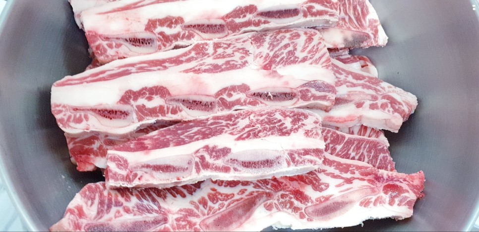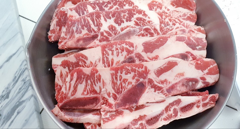LA갈비는 찬물에 담가 핏물을 빼는 게 제일 먼저예요이때는 찬물에 설탕을 2잔 정도 넣고 약 20~30분 정도 피를 빼줍니다.지금까지 느끼하지 않고 la갈비구이를 만들 수 있었던 것은, 저는 핏물을 빼는 일을 항상 해왔던 것 같은데,