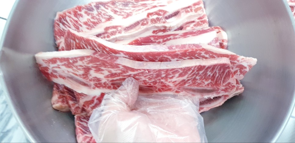 위쪽이라 테이크 아웃이 보이는 부분의 갈비는 크기도 일정하고 확실히 고기가 좋아 보이네요냉동 고기를 잘라서 준비해 코스트코에서 판매하고 있기 때문에 안심하고 먹고는 있습니다만.