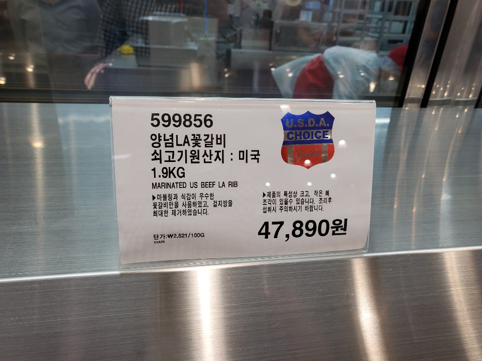 이번에 구입한 코스트코 미국산 LA 갈비 2.5kg에 64,900원입니다미국산 냉동육을 올해 초 1월에는 2.5kg에 71,900원에 판매했지만 현재는 2.5kg에 64,900원에 판매하고 있습니다100g당 약 2496원 꼴이네요.구매대행을 하는 것보다 직접 코스트코에서 구입하는 것이 약 8천원 저렴합니다.28, 29일에 구입하면 충분히 명절에 먹을 수 있으므로, 시간이 있으면 직접 코스트코에서 구입해 보세요.