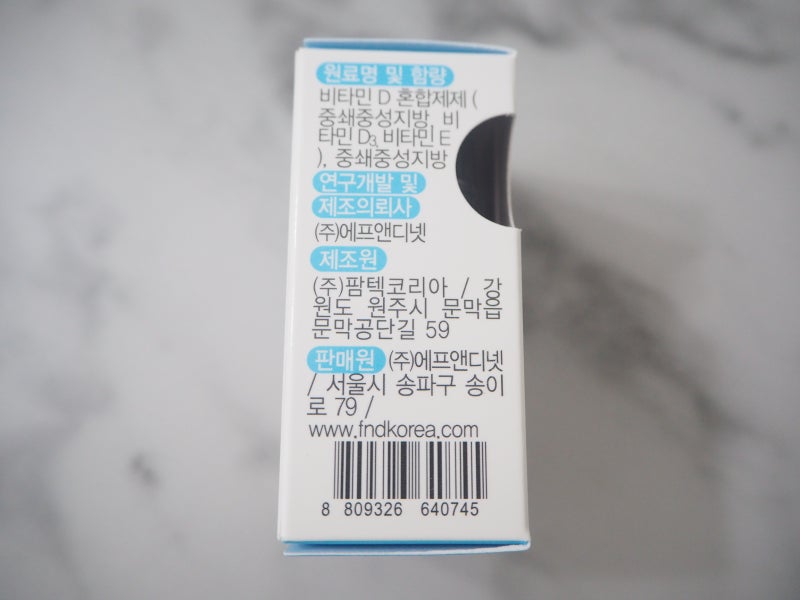 패키지 상자 뒷면에는 들어가는 성분이 체내를 흡수할 때 도움이 되는 정보가 상단에 적혀 있습니다. 🙂 중간에는 성분정보를 확인할 수 있습니다.아기 비타민D는 하루 영양성분 기준치 비율이 100%이기 때문에 유산균과 비타민D, 아연까지 섭취할 수 있기 때문에 정말 편하거든요.