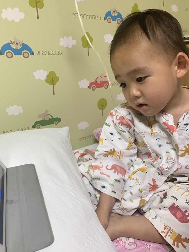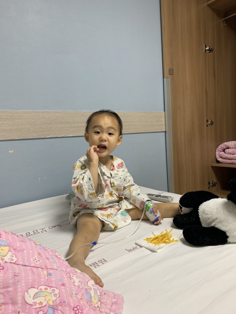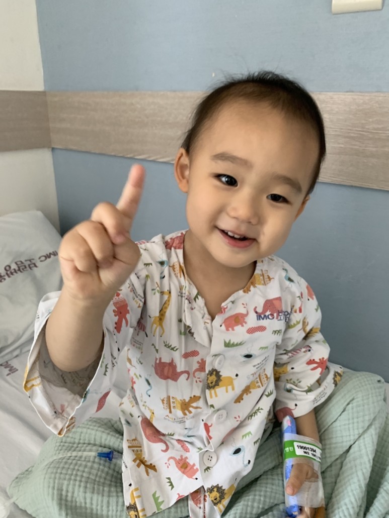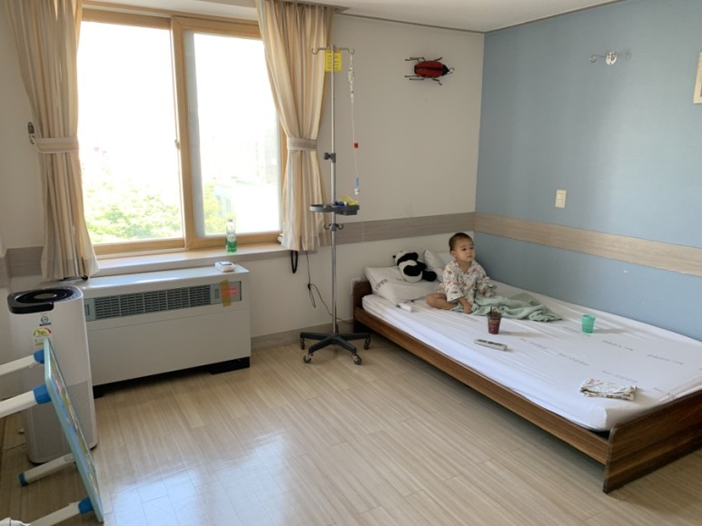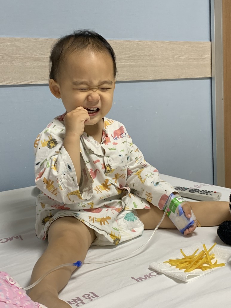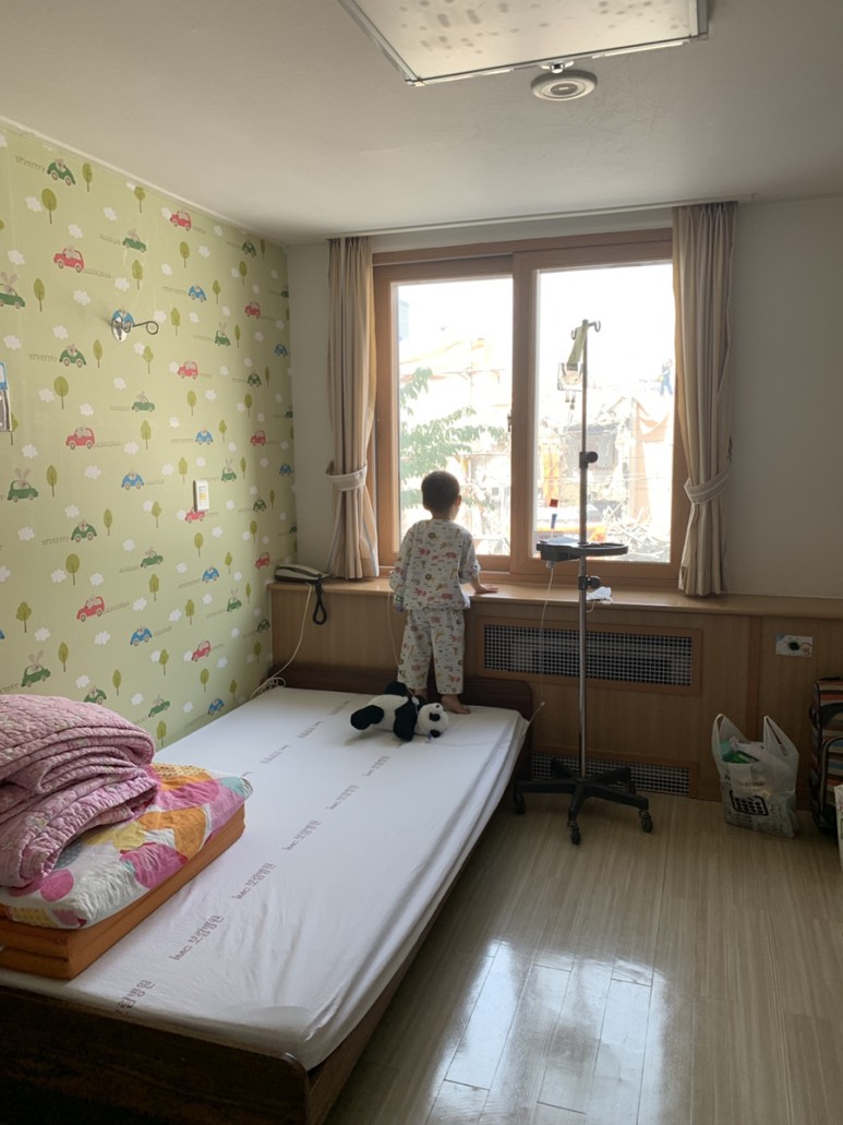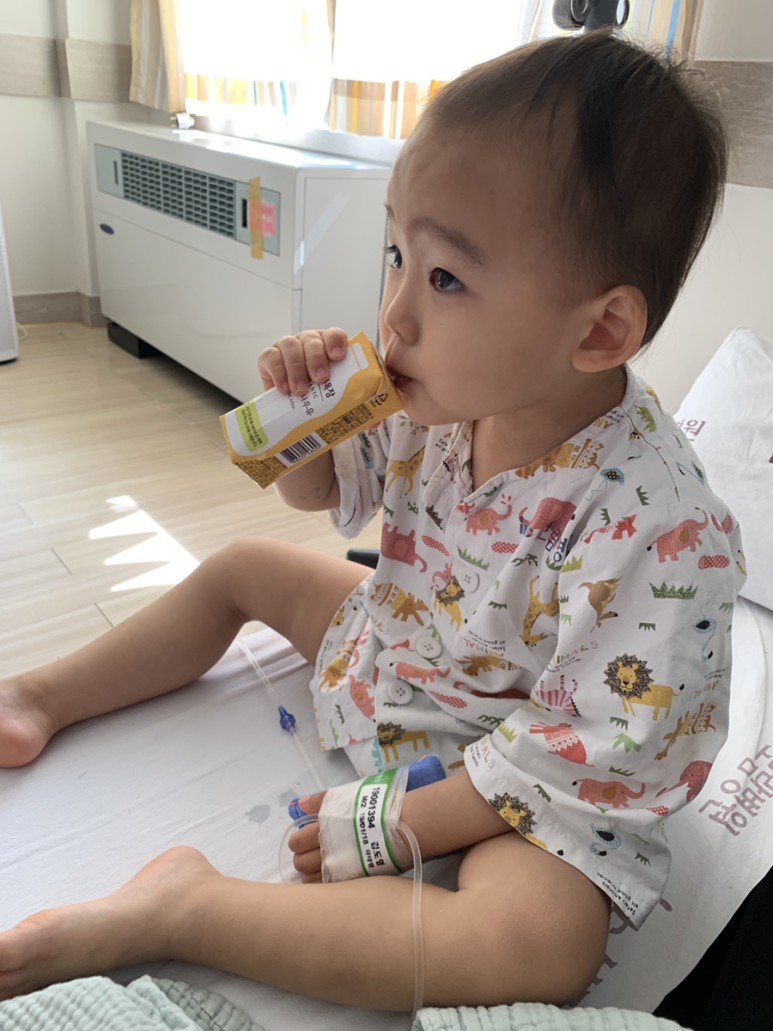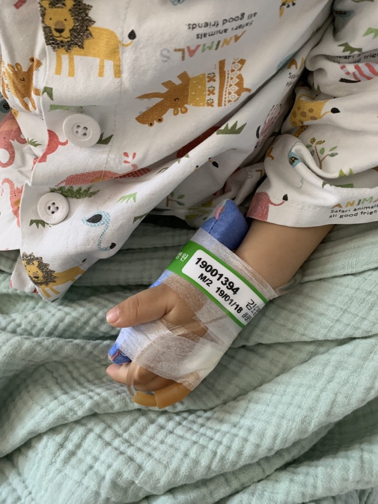 다행히 입원해서 열이 확 안 오르고 가끔 38도 초반으로 올라가서 해열제를 먹이면 다시 내려가고 반복… 완전히 떨어지지 않고..(눈물) 선생님께서 회진을 오셔서 그래도 해열제 먹으면 열이 내려가니까 좋은 양상이고 염증도 좀 가라앉은 것 같은데 피검사 결과 염증 수치가 2개 높게 나와서 좀 길어질 것 같다고 하셨다)